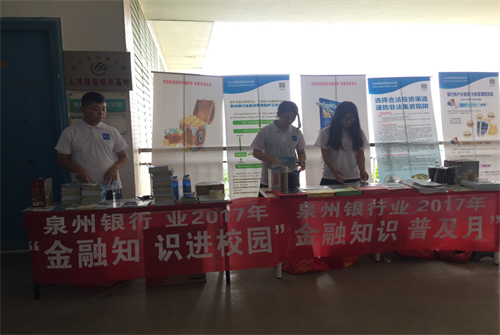 为进一步普及金融知识,提高大学生金融安全防范意识,9月12日、13日,我校携手泉州银行针对2017级新生开展为期两天的“金融知识校园行”宣传活动。