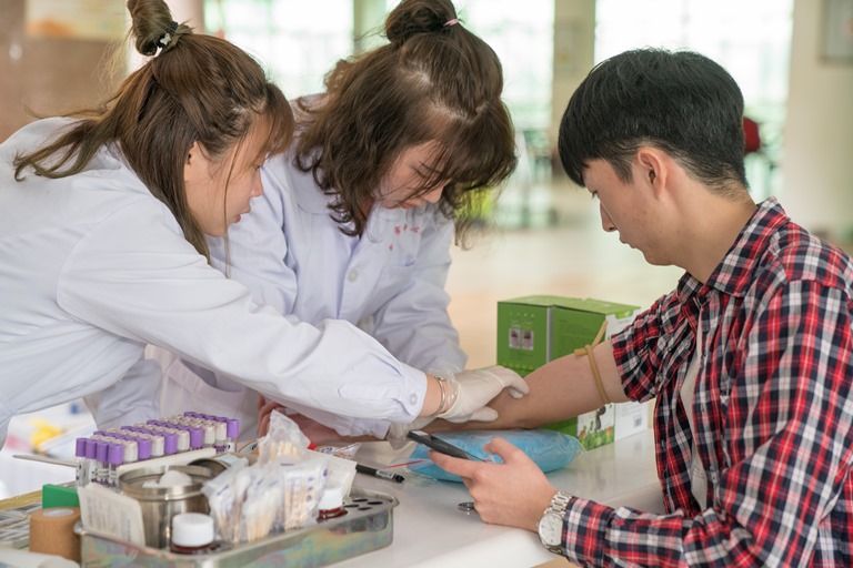 同学正在献血