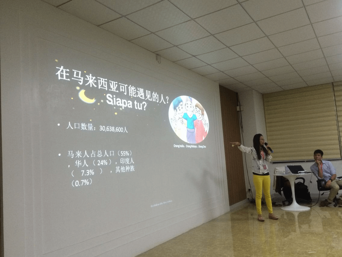 月14日晚上7时,“走近马来西亚”活动率先展开。该活动为期六周,特别邀请两位厦门大学的马来西亚留学生来到晋江,与本校学生、教师、创业校友近30人进行每次二小时的国家经济、社会、文化、教育介绍与基础会话教学。吴滨如副董事长、副校长参加活动并致词,她说学校十分重视学生综合素质和视野的培养,“一带一路进校园,从心走近东南亚“将陆续邀请来自马来西亚、菲律宾、泰国和越南四个国家的留学生,来校进行三至六周的分享交流,希望用有别于课堂教学的方式让每位学生能力素养得到培养,她对远道而来的留学生们以及所有参与活动策划的工作团队表示感谢,并期许所有参与活动的师生们能用心参与、满载而归。