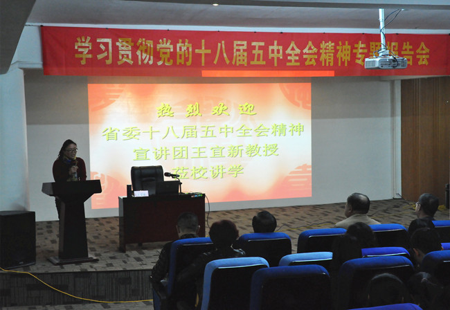 日下午,省委十八届五中全会精神宣讲团成员、省委党校原副校长王宜新教授应邀到校,为我校全体党员作了一场精彩的专题报告。我校校领导、中层领导、全体党员、在校入党积极分子以及泉州轻工学院部分党员领导干部近
