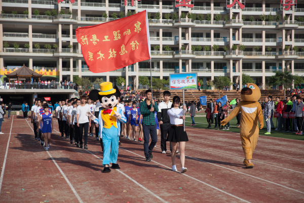 在学校鼓队的带领下,各院(系)以班级为方阵相继入场接受领导老师的检阅,此次校运会开幕式共有