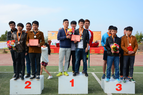 本次田径运动会由熊凤枚老师宣布本届运动会的竞赛成绩。14级工商企业管理以189分夺得学生组团体桂冠,15级工商企业管理与15级会计四班分别为亚军、季军。教工团体前三名分别是学工处、车辆系、机关。