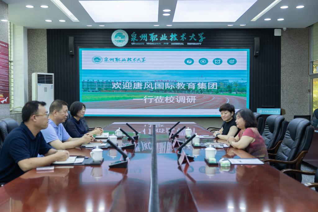 7月11日,唐风国际教育集团执行董事王宝旺一行三人莅校参访,双方就国际合作交流、职教出海等项目进行探讨。我校校务顾问姚丹、对外合作交流处副处长王寰参加会谈。