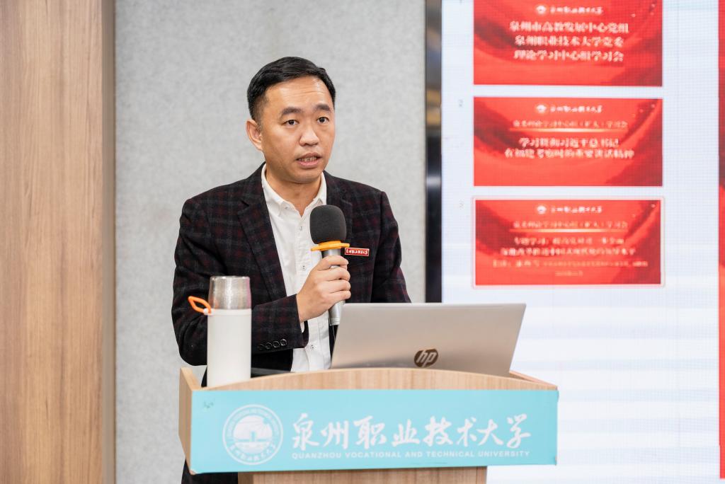 参加专题学习会的有我校党建共建单位泉州市高教发展中心主任黄永东,副主任李冬英、陈兴;学校在家领导、党委各部门负责人、中层党员干部、各党支部书记、马克思主义学院全体教师、学生党员代表。