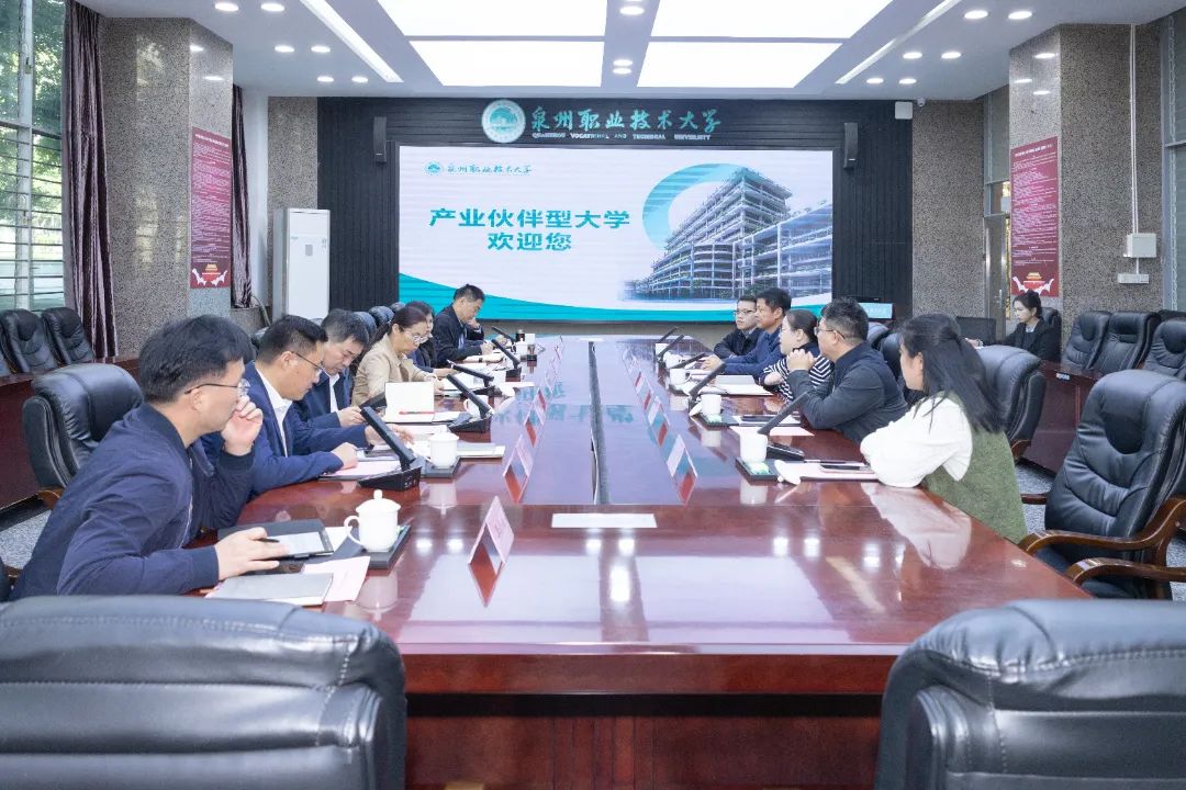 在座谈会上,校领导对来宾表示热烈欢迎。吴滨如校长详细介绍了学校在产教融合、校企合作、人才培养、职教出海等方面的做法成效。学校作为晋江市域产教联合体的牵头院校,充分发挥自身优势,整合各方资源,促进了教育链、人才链与产业链、创新链的有机衔接。同时,今年牵头组织13家联合体成员单位成功申报建设培育市级产教融合型企业和市级产教融合实训示范基地,进一步提升联合体建设成效。