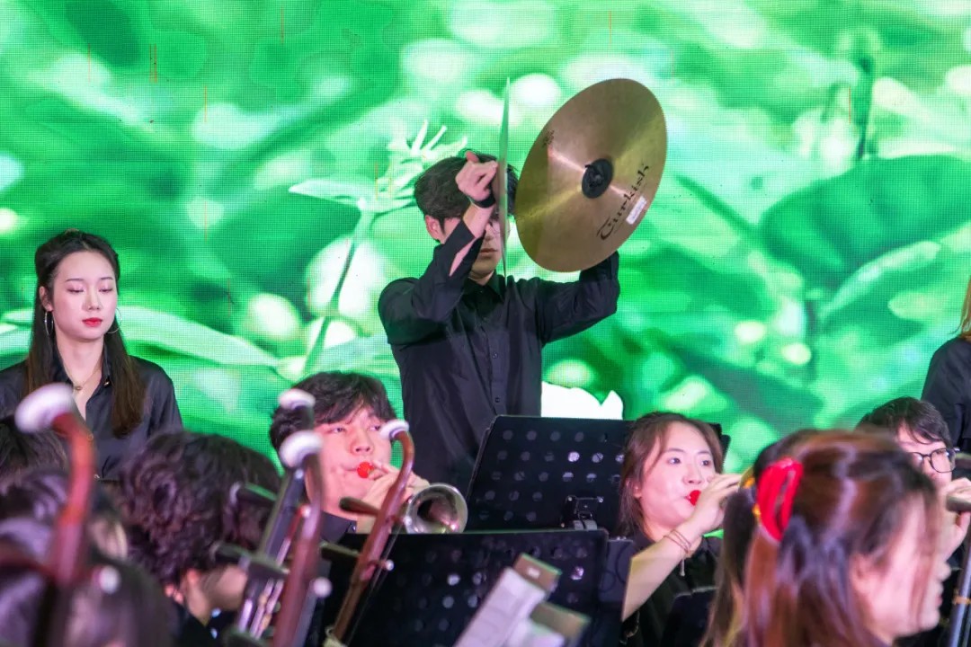 铿锵有力、气势磅礴的民乐响起,一曲《金蛇狂舞》拉开了音乐会的序幕。这是聂耳于1934年根据民间乐曲《倒八板》整理改编的一首民族管弦乐曲,奠定了音乐会昂扬的基调和欢腾气氛。