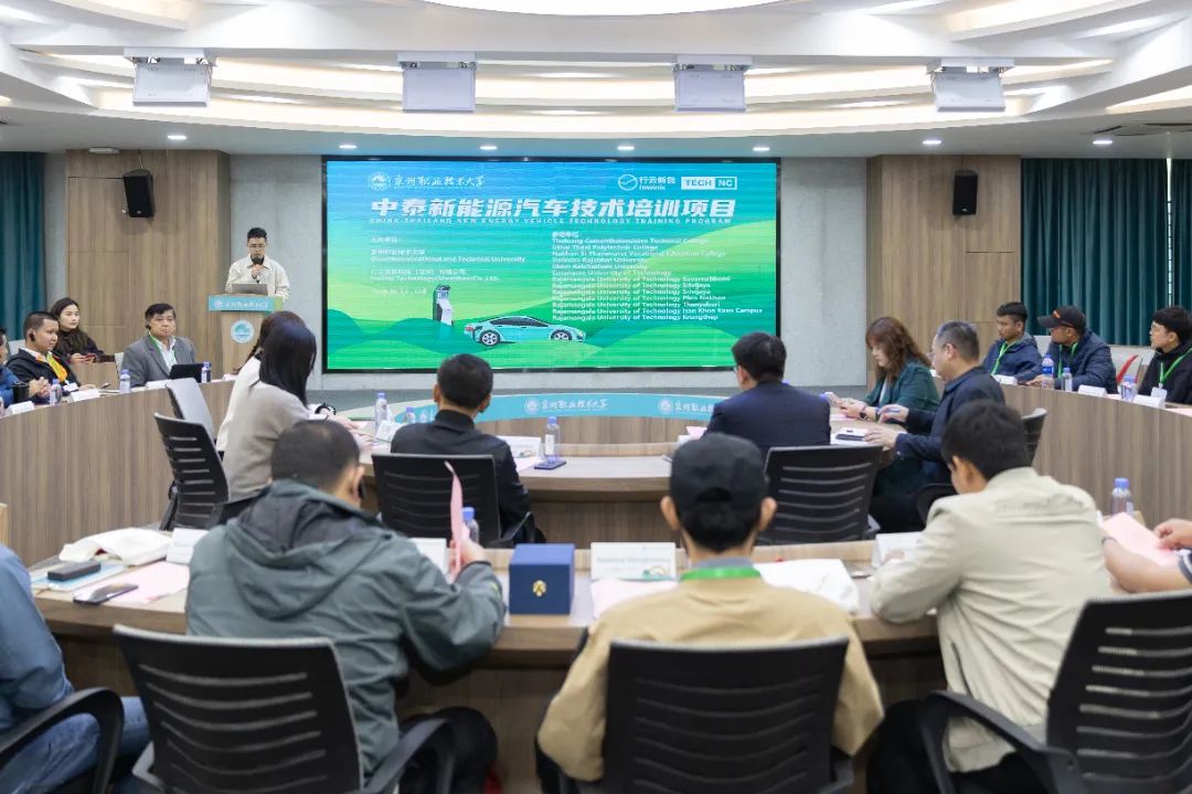 4月2日,中泰新能源汽车技术培训项目开班仪式在泉州职业技术大学举办。仪式上,泉州职业技术大学副校长林文艺、工学院副院长蔡海毅、行云新能院校运营总监王克静与终身教育学院副院长吴燕红、对外合作交流处副处长王寰,及来自泰国的TECH NC集团董事Komate Jullakarin、12所职业院校的28名教师等出席。