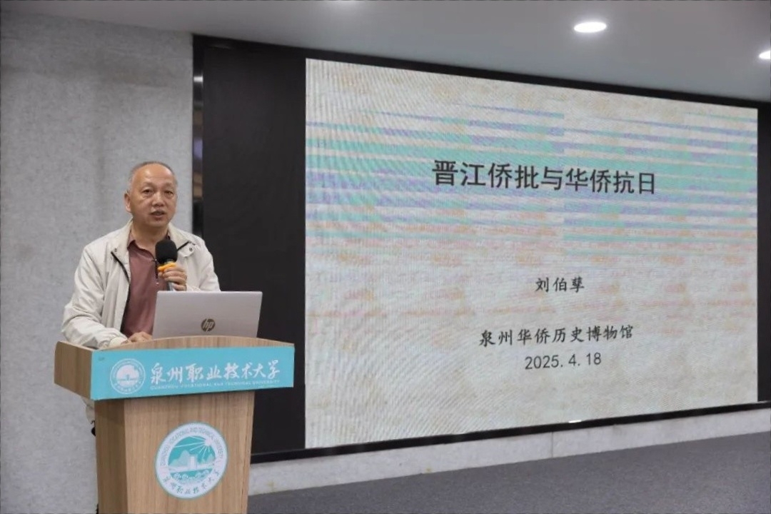 启动仪式上,学生代表饱含深情的朗诵《可爱的中国》,带我们重温了那段峥嵘的历史,深刻地感受到革命先烈的崇高信仰。本次活动还邀请了泉州华侨历史博物馆刘伯孳老师作《晋江侨批与华侨抗日》主题讲座,刘伯孳通过侨批这一历史载体,生动描绘了华侨在抗日战争中的感人故事,让在场的师生们深切体会到泉州华侨对家国的无尽眷恋和无私奉献,激发了师生们的爱国热情。