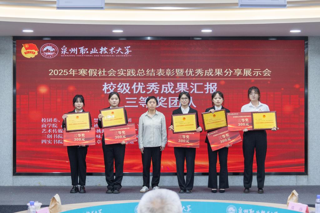 2025年寒假期间,泉州职业技术大学组织开展“追寻领袖足迹,体悟优秀传统文化”社会实践活动,全校共报备团队161支,参与实践人数达3765人。其中,校内各单位重点指导42支团队,其中包括了诠释春节“福文化”实践团1支、追寻领袖春节足迹实践团1支、体验福建海洋文化实践团3支、传承非遗民俗文化实践团17支,探究春节文化内涵和讲好春节故事实践团2支,助力乡村振兴实践团2支、数字赋能实践团3支,红色文化实践团4支,公益志愿实践团5支,其他类别实践团4支。为表彰先进,树立典型,本次寒假社会实践校级共评选了18位先进个人,4位先进工作者,12支优秀团队,12项优秀成果,其中视频作品3项,文创作品3项,调研报告3项,宣传绘本画册3项。