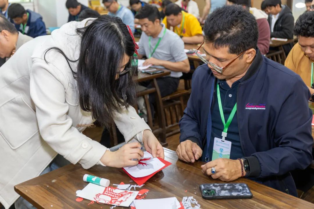 “宋干节”前,书法、茶艺与剪纸三堂课,则让泰国学员亲身体验了一把中国传统文化的独特魅力。虽然语言沟通不大自如,但师生们教与学其乐融融,欢乐的表情涌动着温馨、温暖。