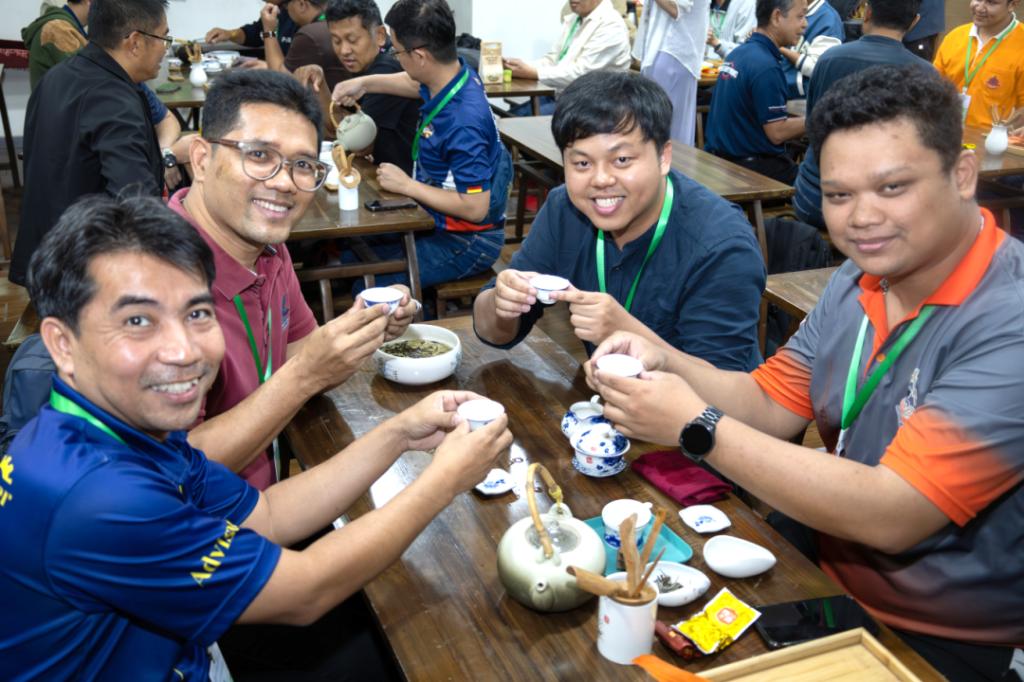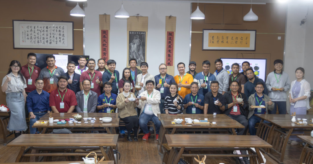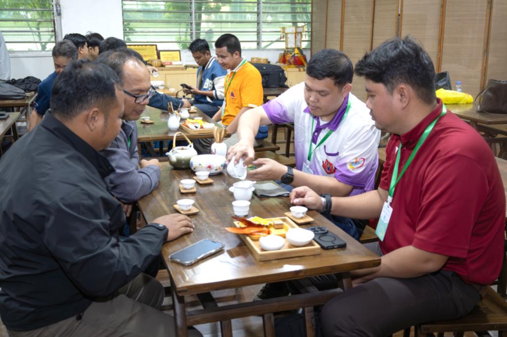 在当天进行的茶艺课上,学员们观赏了茶艺老师何水平的茶艺表演,并在何老师的指导下,感受了一杯春茶在舌尖绽放芬芳的美妙滋味。随后,28位泰国老师还现场体验了泡茶、奉茶和一起品茶的乐趣,从中知道了泡好一杯茶的学问,真切了解了中国茶文化的博大精深。