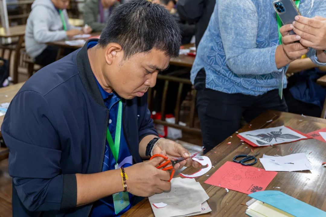 4月14日,在剪纸体验课上,泉大剪纸协会的同学谢亚彤和张玉桢为学员们详细介绍了剪纸的文化历史。紧接着,体验环节中,协会会长程天琪带着学员们在纸上剪出一张张栩栩如生的图案。学员们用小小的剪刀,在红纸上剪出了“泉州”的纸样和十二生肖,以及《红楼梦》金陵十二钗等图案,一起感受了这项指尖艺术的神奇。