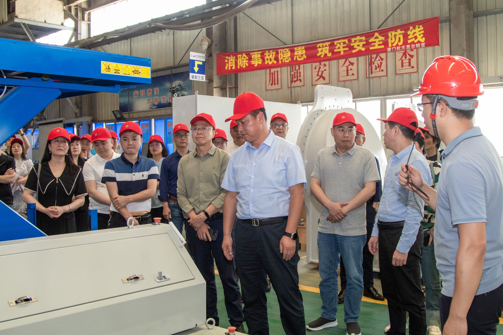 在航天思尔特陈炀华经理和工作人员的带领下,我校一行参观了航天思尔特智能化装配间, 深入了解了智能制造的前沿技术与发展,以及智能制造领域先进设计在工程机械、智能物流等各领域的应用实施案例。