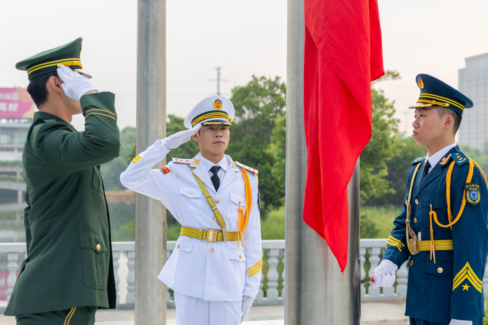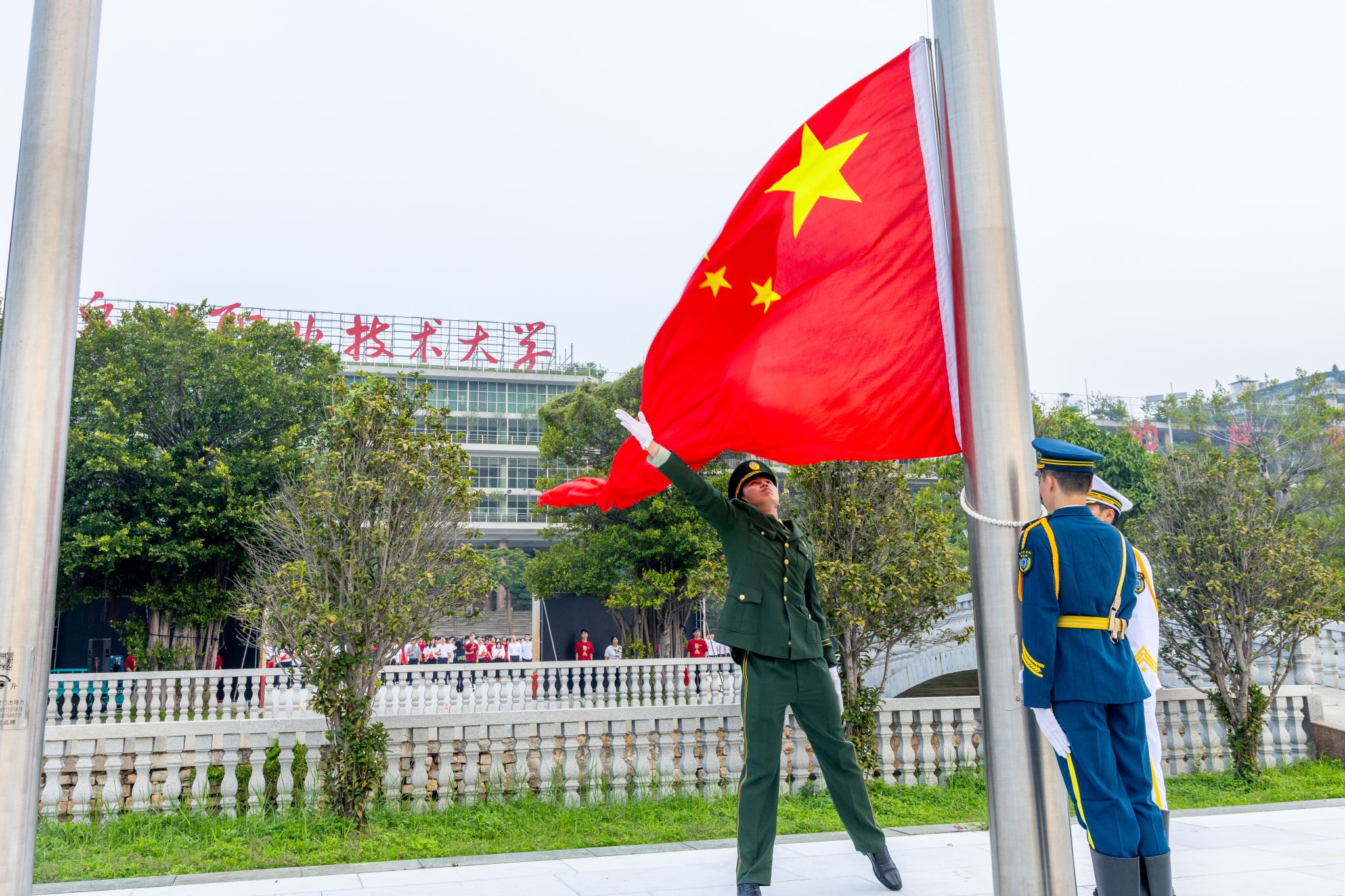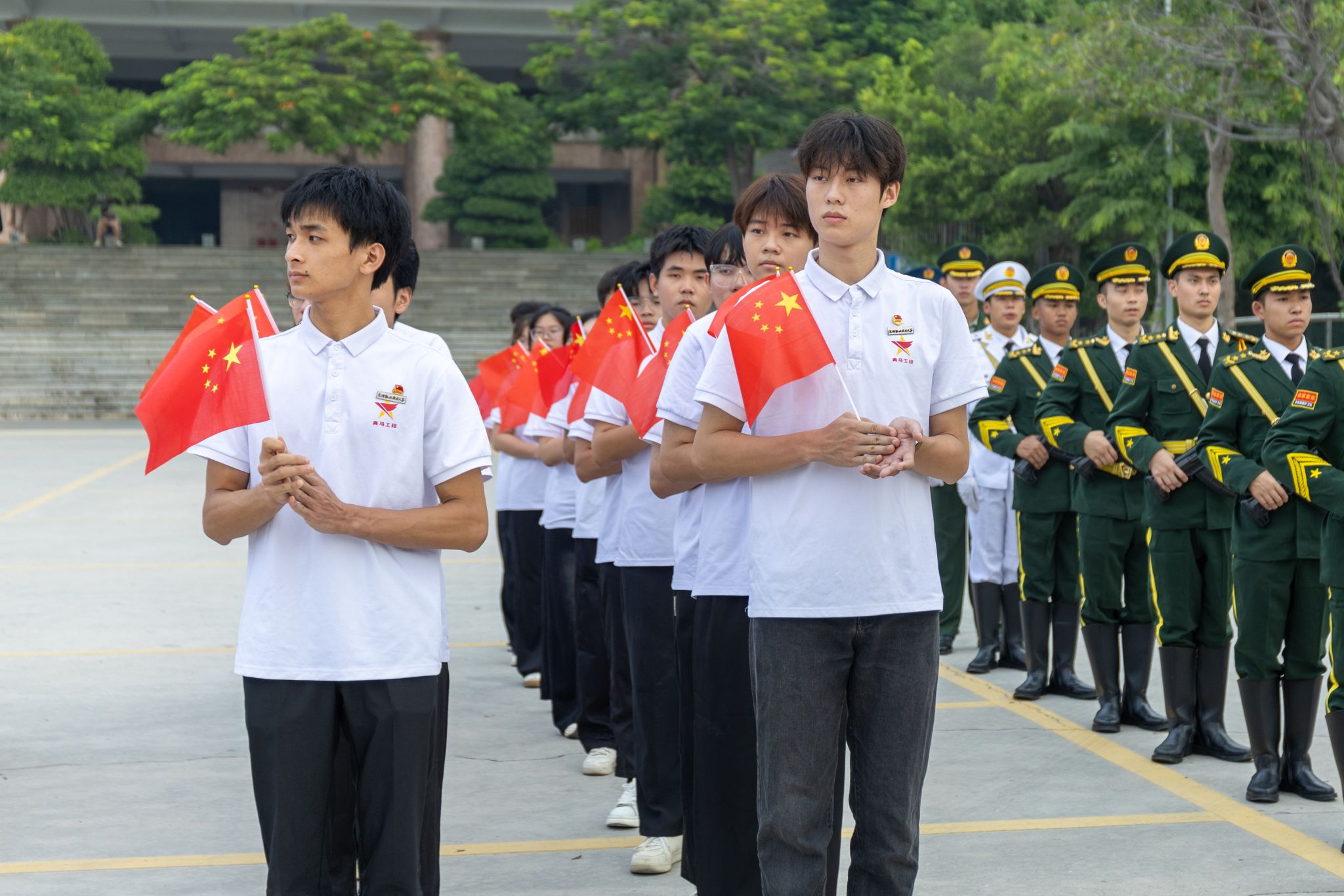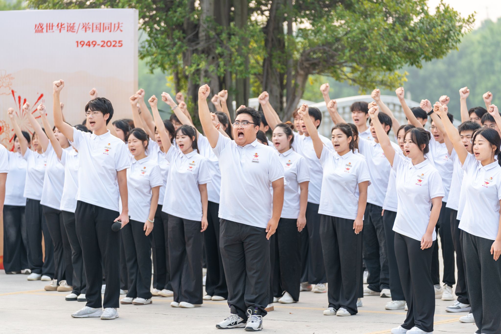 “五星红旗迎风飘扬,胜利歌声多么响亮……”升旗仪式尾声,全体师生齐声高唱《歌唱祖国》,嘹亮的歌声回荡在校园每个角落。师生们挥舞着小国旗,眼中闪烁着激动的光芒,用最真挚的歌声传递对祖国的祝福,用最昂扬的姿态展现泉大青年的活力。