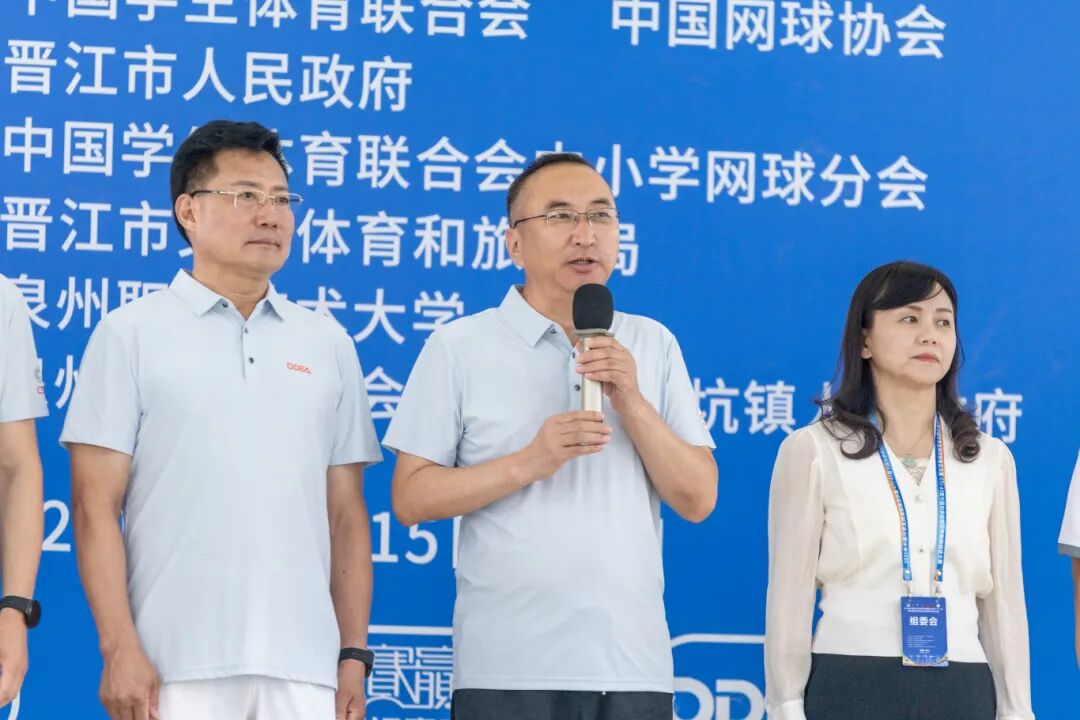 开幕式在青春活力的暖场音乐中拉开帷幕。出席活动的有中国学生体育联合会中小学网球分会主席陈国荣、晋江市文化体育和旅游局局长蔡惠琼、泉州职业技术大学党委书记傅志雄中国学生体育联合会中小学项目主管田博、中国学生体育联合会纪律监督委员会委员颜中杰、中国学生体育联合会中小学网球分会秘书长曹郑、泉州市网球协会会长苏文彬、特邀嘉宾江苏省泰州市溱潼中学校长张道京、中国中学生网球联赛总决赛赛事监督粟辉、中国中学生网球联赛总决赛裁判长马立迎等,及中国学生体育联合会、中国网球协会、晋江市人民政府等单位相关领导、嘉宾。