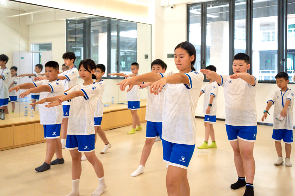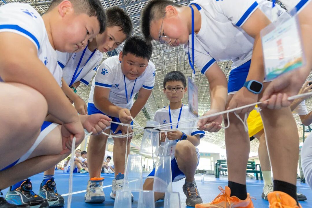开营首日,一场别开生面的心理团建活动便打破了陌生感,“桃花朵朵开”破冰游戏迅速点燃现场氛围;报纸建塔”挑战加深团队协作,“夏日粘土奇遇”环节为活动增添了无限创意与乐趣。随后的非接触式心理互动测评,帮助团队老师了解营员情况,为夏令营活动提供参考。趣味运动会上更是热闹非凡。足球保龄球、摸石过河、纸杯搭搭……营员们为团队荣誉拼搏,陈少聪赢得比赛后与队友相拥:“一起努力的感觉真好!”