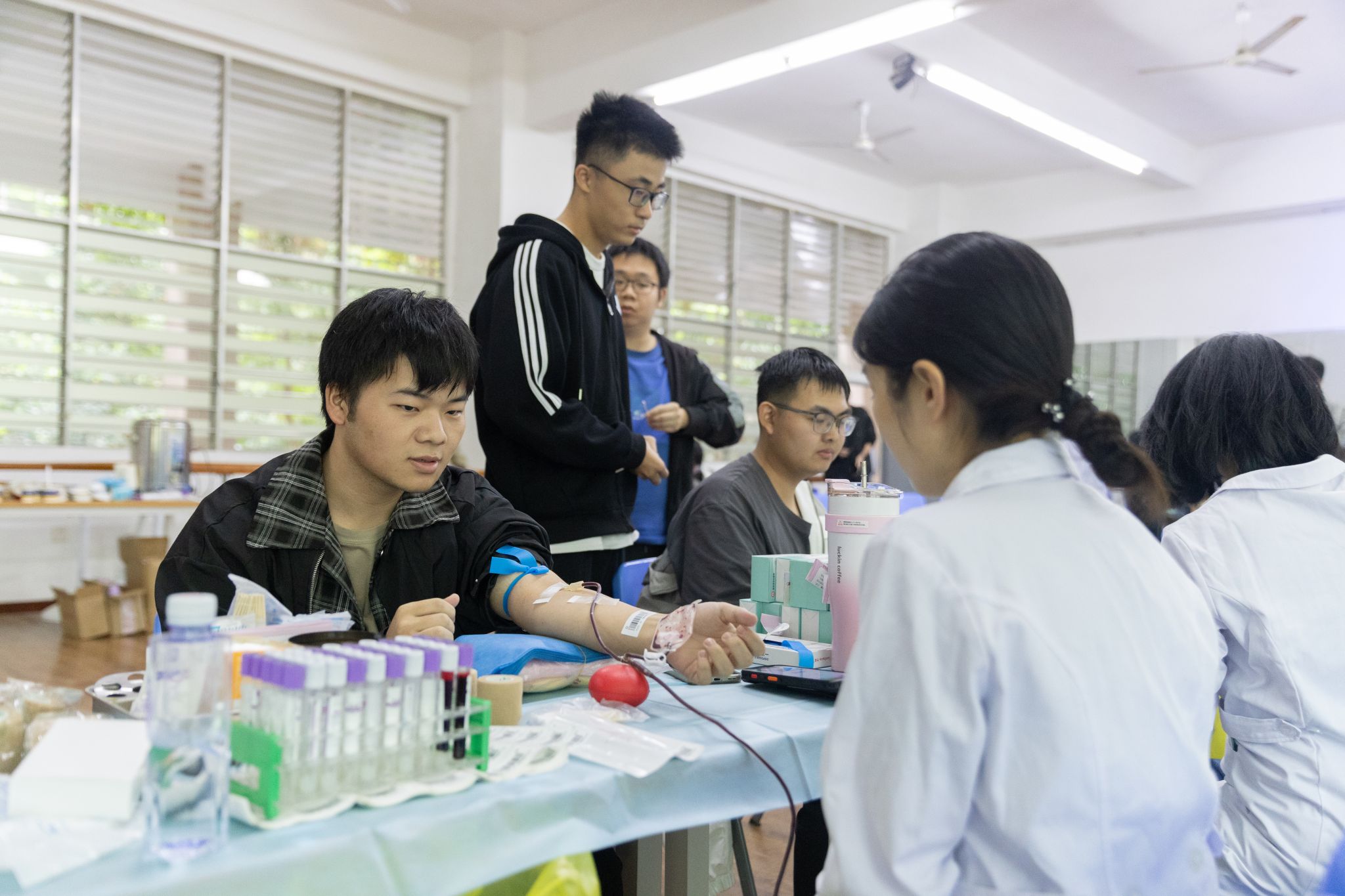 活动现场秩序井然,温情流淌。志愿者们各司其职,悉心引导;医护人员专业细致,耐心操作。同学们在志愿者的引导下,依次完成登记、体检、验血等流程,在等候区静静等待献出自己的一份爱心。