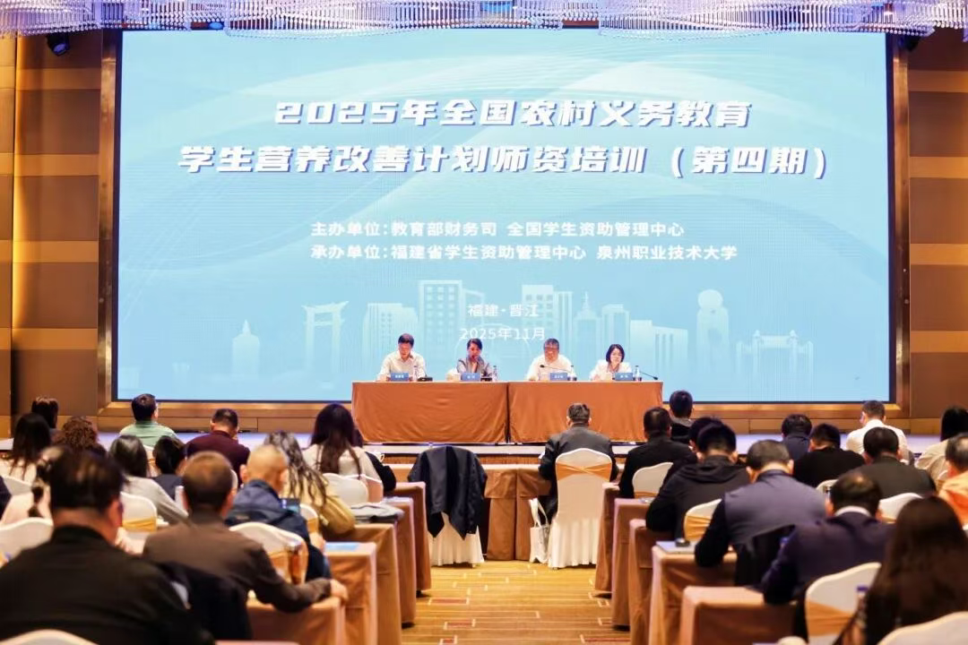11月,2025年“全国农村义务教育学生营养改善计划师资培训(第四期)”和“中等职业教育学生资助工作培训班”两项国家级重要培训会议相继在福建晋江顺利举行。作为承办单位,泉州职业技术大学终身教育学院以卓越的组织协调能力和细致周到的服务保障,赢得了主办方教育部相关司局、全国学生资助管理中心及全体参训学员的高度评价,彰显了学校在职业教育领域的综合服务能力。