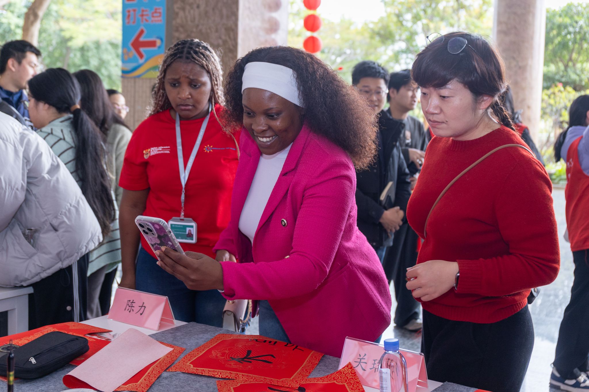 活动现场,29位南非青年学员,其中9人是南非青年企业家、20人是南非跨境电商留学生,他们将在泉大开启为期半年和一年的学习,项目聚焦数字贸易、运营管理、文化交流三大主题。南非营员在泉大老师和同学的指导下,提笔蘸墨,体验从“马到成功”到各自中文名的书写。