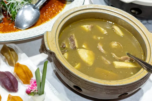最后的甜品,是一道“马到成功”,正是马蹄酥配南安番薯甜汤,为这场风味之旅画上圆满的句号。