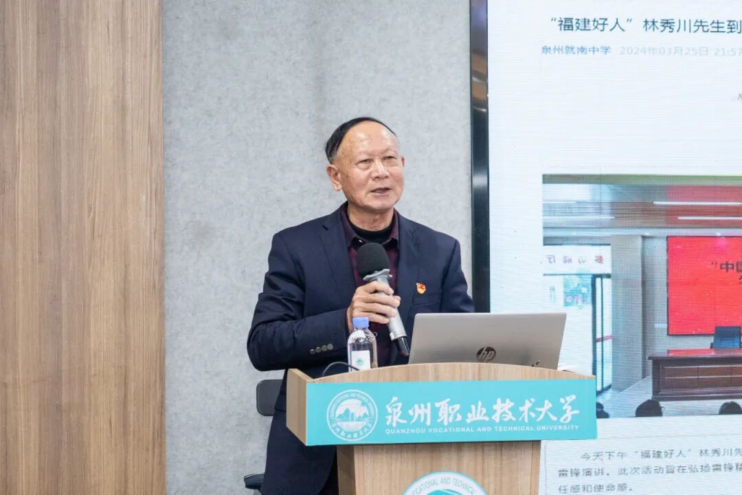 校团委联合一善书院开展“雷锋精神薪火传,模范引领助成长”道德模范进校园宣讲活动,特邀“福建好人”林秀川进校分享。活动现场举行导师聘任仪式,林秀川受聘为一善书院导师,以其榜样力量助力校园德育与关工委育人工作提质增效。