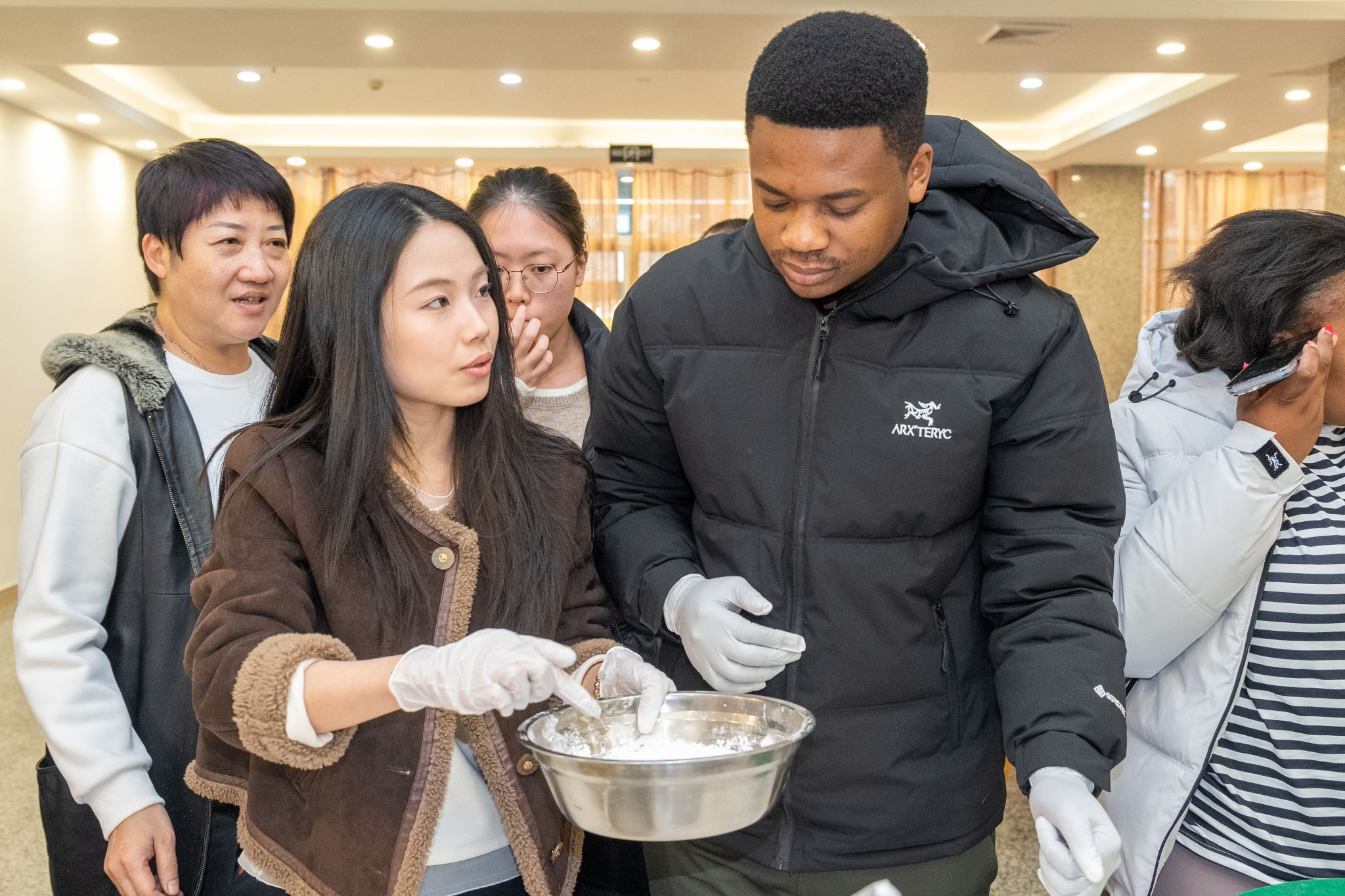这是学校为南非学员特别策划的闽南年味体验活动。29位南非青年学员,其中9人是南非青年企业家、20人是南非跨境电商留学生,他们将在泉大开启为期半年和一年的学习。半个月前,他们刚在学校行了传统拜师礼点击阅读、参与写春联点击阅读,如今又在中国美食中感受浓浓的中国年味。