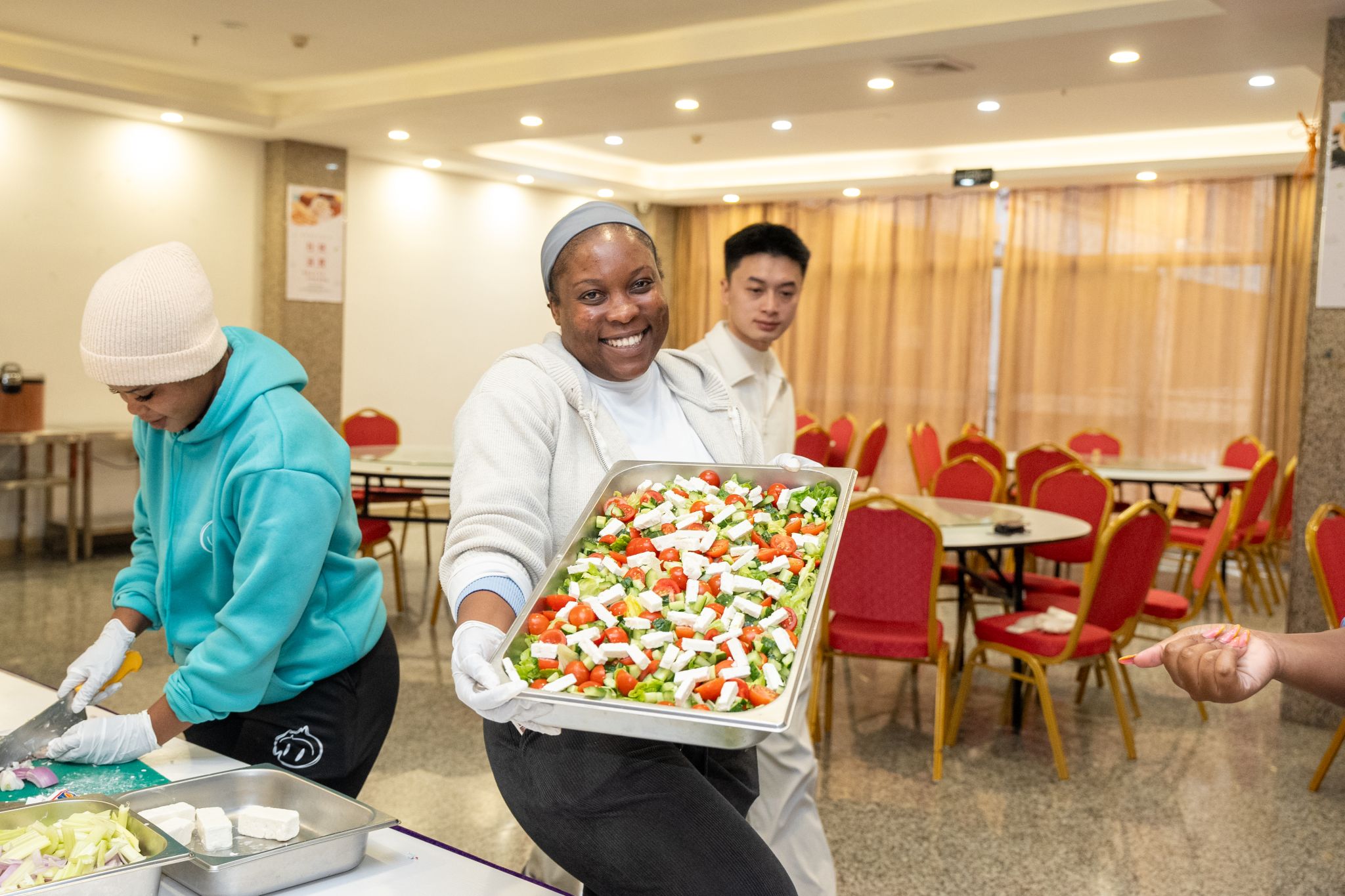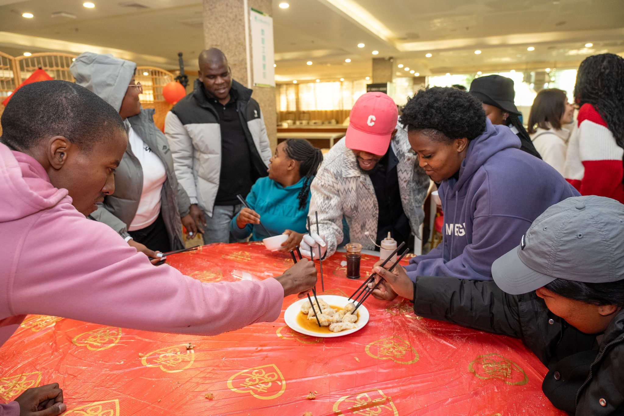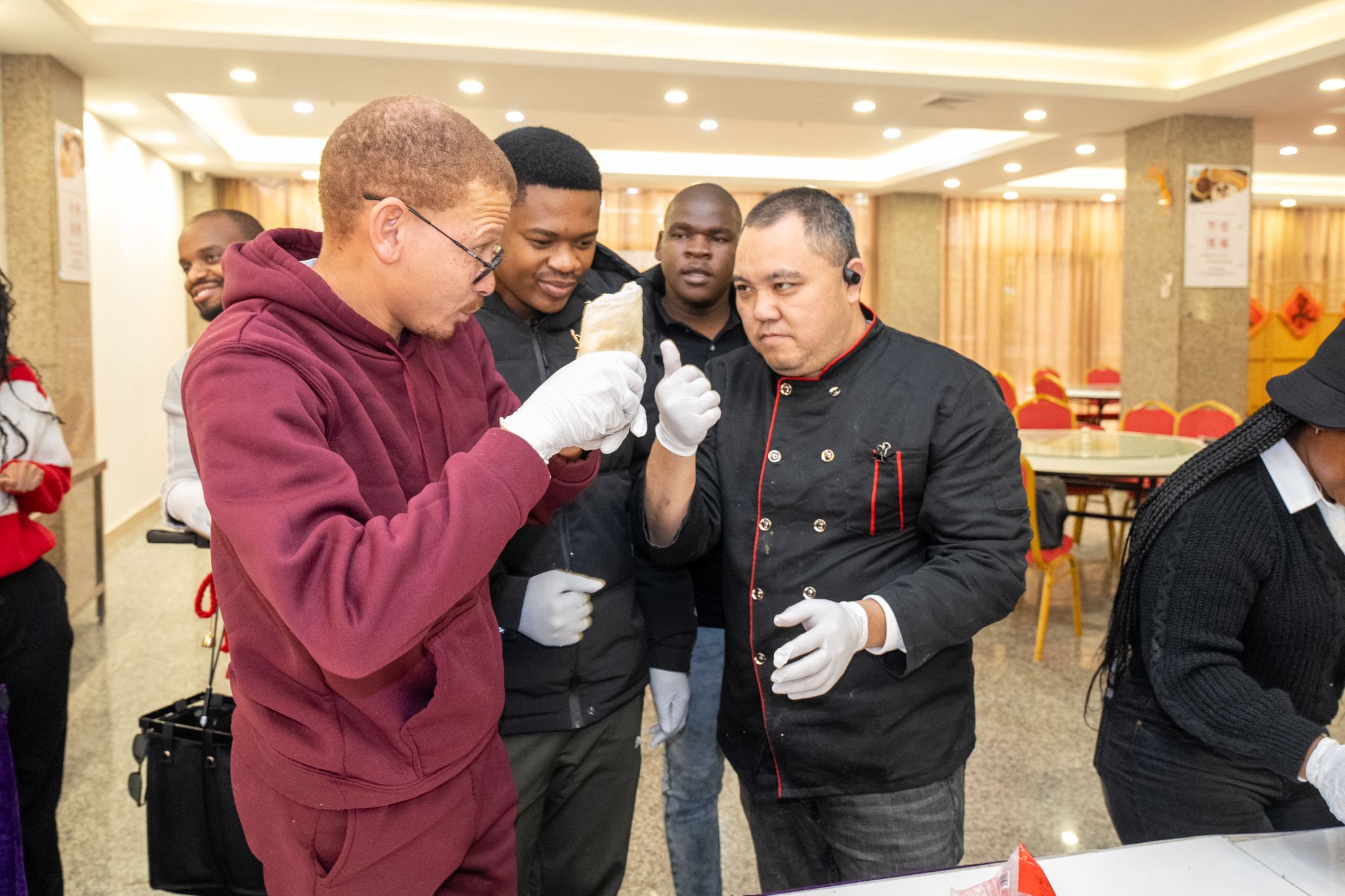 活动中,南非学员也端出家乡风味:香气四溢的Braai烧烤与清新爽口的Chakalaka沙拉、甜蜜蜜的PAP玉米饭,与中国美食同台亮相。学员Thanduxolo Lovepeace坦言,南非饮食辛辣重香料,中国菜则更加清爽可口,“润饼和饺子我都很喜欢!中国美食与南非菜肴同时上场,这正是文化交流的意义,我们都在学习彼此的‘味道’。”
