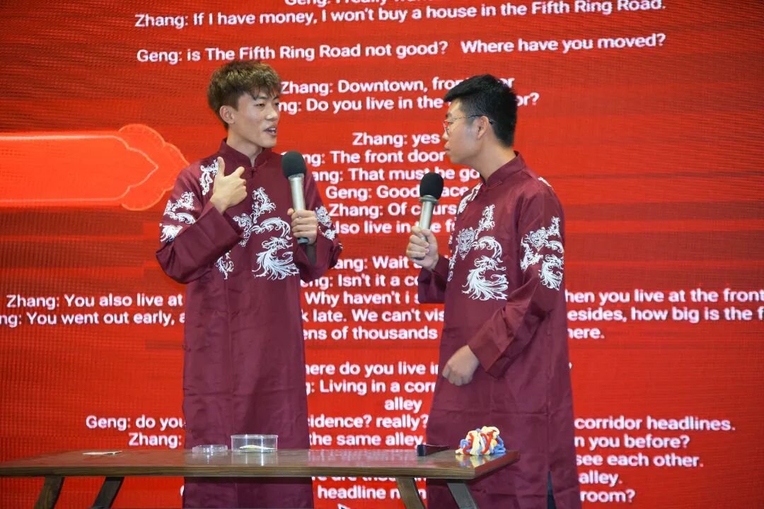 潘铭宇在英语角中担任主持人,活跃现场气氛