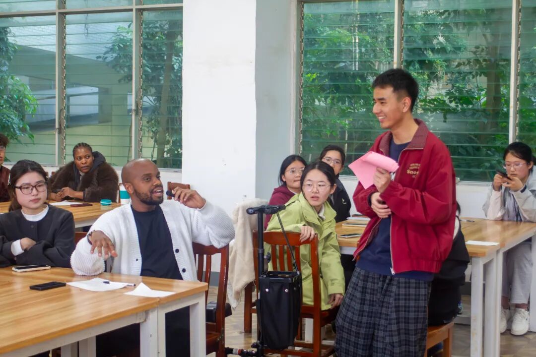极为珍贵的是,这学期的英语角,还特邀在校学习的南非青年参加交流,使同学们能面对面与国际友人交流。教育学院英语教师、国际语言中心主任刘颐琳副教授,一直在活动现场指导,看着中外学生用英语沟通,她满心欣喜,“英语角不仅练口语,更是一座帮学生从课堂连接真实世界的桥梁!”