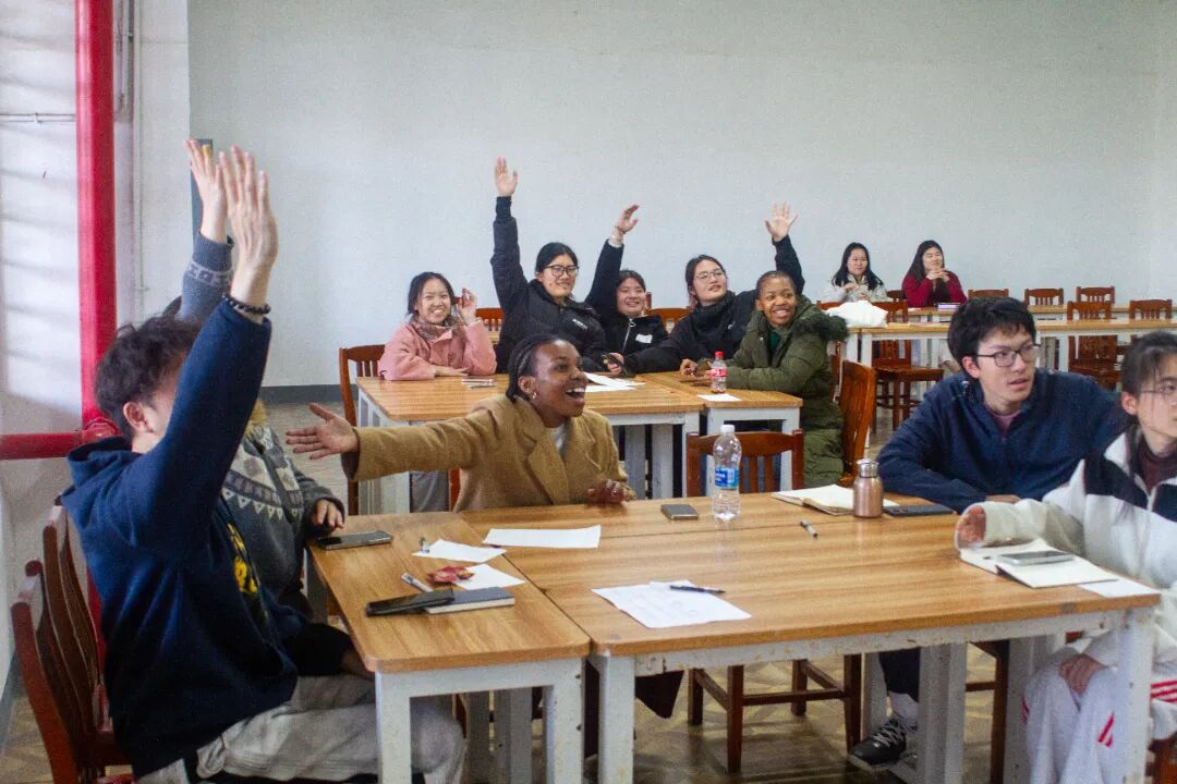 同伴Mteto Ongeziwe同样喜欢英语角,她觉得,能和中国同学一起组队玩游戏很有趣。游戏中,有的同学刚开始有点害羞,但随着游戏的进行,他们也都努力开口说英语,努力去理解队友。Mteto还在活动中认识了两位新朋友,她灿烂地笑着,“这是我的意外收获!”让同学们在交流中成为朋友,是老师们设计英语角的初衷,“因为在交朋友的真实场景中,同学们的语言能力可以得到更好的提升。”