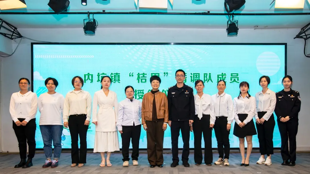 活动中,还举行内坑镇婚姻家庭矛盾纠纷化解联络点揭牌,并为内坑镇“桔里”婚调队成员授徽。