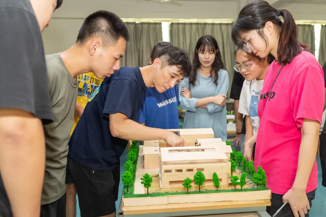 沉浸式教学,在校园许多教室同时开展。在人居环境学院,叶加根老师运用各种有趣的民宿设计模型,正在给建筑室内设计专业2020级的学生们,讲述室内设计手绘表现技法。从二维的平面图纸,到三维的立体模型,学生们的兴趣被真正激发出来,他们兴致勃勃,不停地与老师交流互动……