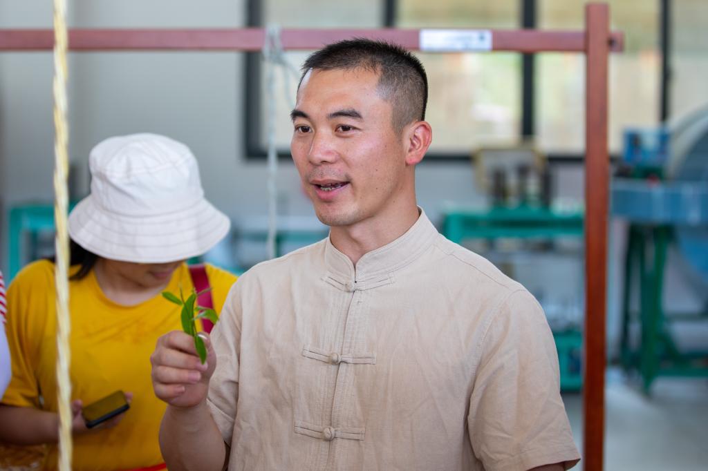 一片叶子,藏着深厚的中华传统文化,里面蕴含着怎样的传奇?当天,黄老师为同学们特地邀请来了两位铁观音非遗传承人陈艺峰、林茂安,详细为同学们讲解并演示了制作铁观音这道名茶的十二道工序。在两位茶人的指导下,学生们还亲自动手,参与制作了一泡属于自己的“绝版茶王”。