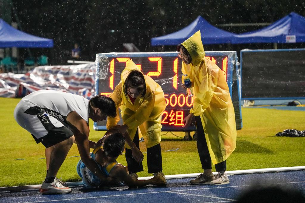 比赛期间,2020级休闲体育3班的张珅玮每天都在赛后控制中心忙碌。他负责引导运动员进出场,配合裁判员控制好比赛流程,还要适时安抚好运动员的情绪。其中,最具挑战的是3000米、5000米长跑赛事。令他印象深刻的是,在一场5000米比赛,一位男生摔倒后,又急忙爬起来,当时,人已神志不清、走路摇摇晃晃,嘴里却兴奋喊着“我还能跑……”张珅玮见状急忙上前,搀扶住男生,并拿矿泉水往其头上浇,帮其进行物理降温,还不停地安抚,让运动员冷静下来,确保人员安全和赛场秩序。