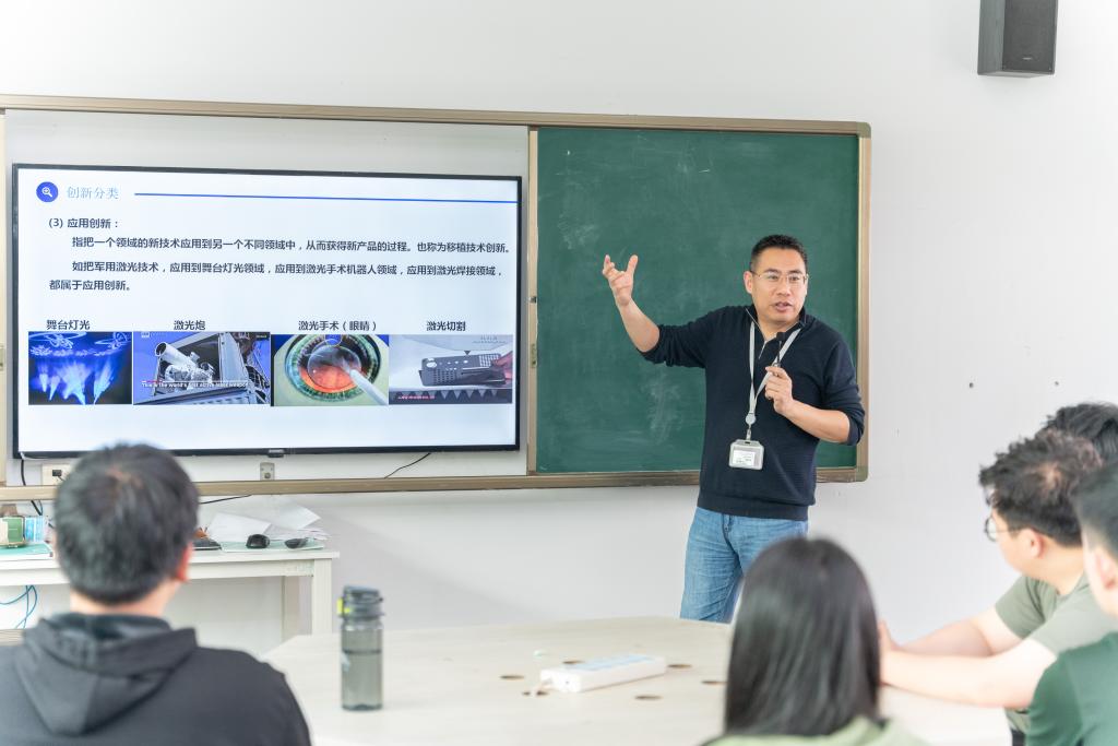 这门课授课老师蔡海毅副教授,是智能制造学院书记兼副院长。课堂上,师生讨论创新概念,学习最火的ChatGPT等前沿科技。实践中,师生提出新理念,创造新机器,去解决各种现实难题。