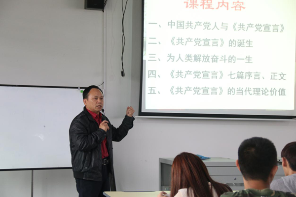 之后,潘超儒老师从五个方面组织大家学习《共产党宣言》,深刻阐述了《共产党宣言》其内涵与地位。