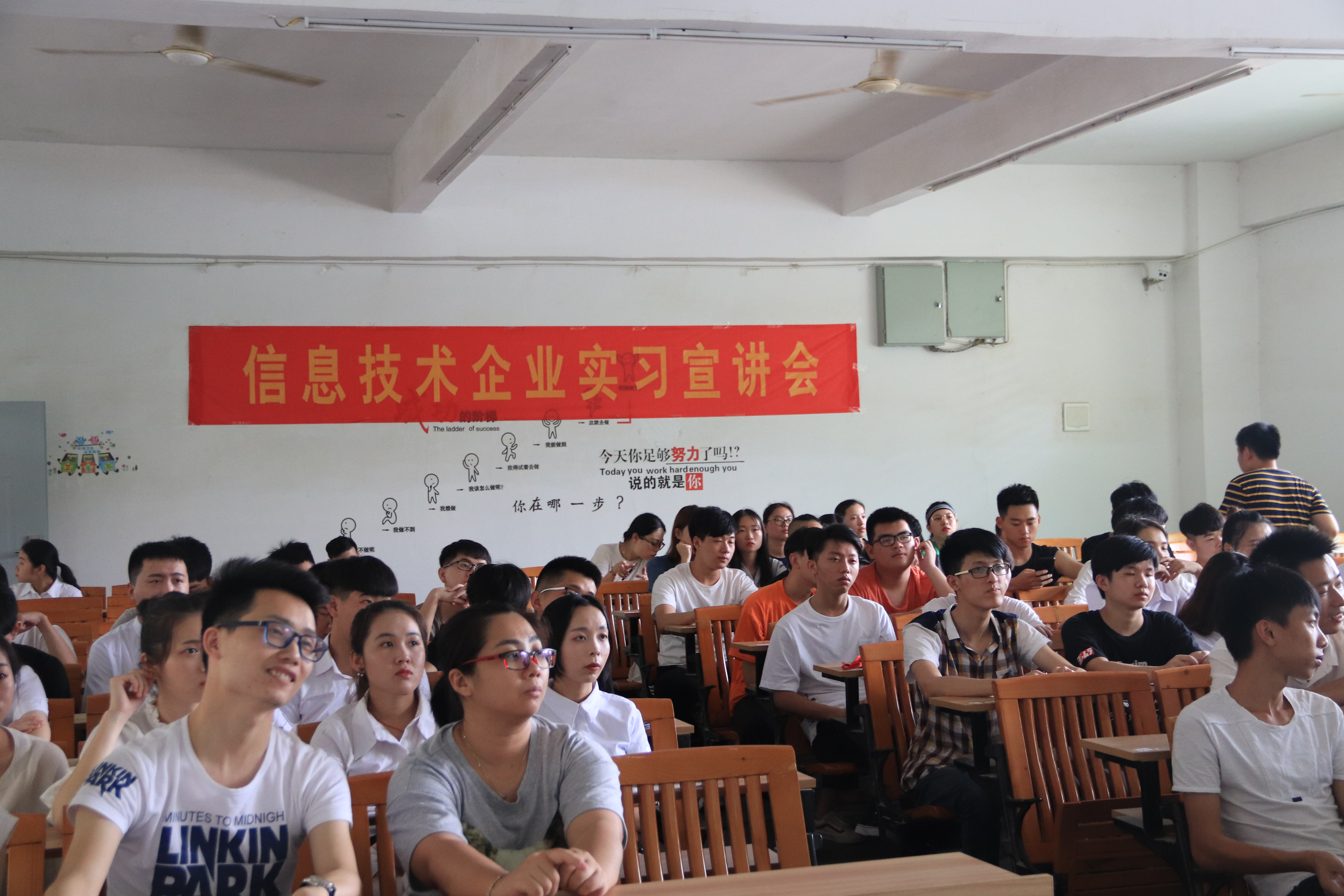 6月20日,下午2点30分,信息系在校主楼221教室开展了16级信息技术企业实习宣讲会。信息系技术系党总支书记王园园老师、信息系团总支书记苏新萍老师、广告设计与制作专业主任傅永剑老师、刘晓君老师及刘虹燕老师到场。企业方则邀请了加速度创意文化、曦望文化传播、火云广告、恩加品牌策划、鼻涕虫婴儿用品和天寰广告等多家广告公司负责人峰聚与此。宣讲会上,各家公司先后向16级广告专业的同学介绍了自己的公司主打品牌、岗位需求、公司优势等,让同学们对各企业有一个初步的了解。