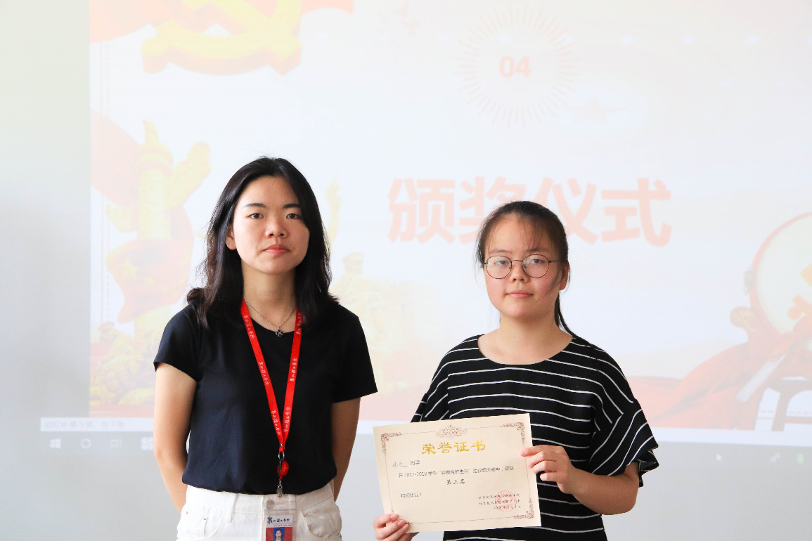 通过层层筛选,我们的评委从6名参赛选手中评选出了本次参赛的三位优秀选手,第一名来自16级计算机应用技术(2)班的林志颖,第二名来自17级数媒影视(1)班的陈宇辉,第三名来自17级数媒影视(1)班的连丹,从三位获奖的同学作品中充分体现了我们这次活动的主题“新时代,新青年”,将当今时代所流行的元素贯穿到视频里,向在场的观众传达了他们对党的祝福。