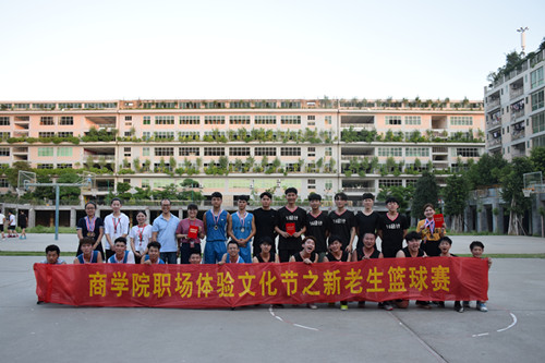 5月16日,商学院职场体验文化节之新老生篮球赛冠亚军争夺战在篮球场拉开帷幕:16旅游酒店 VS 16市场营销。