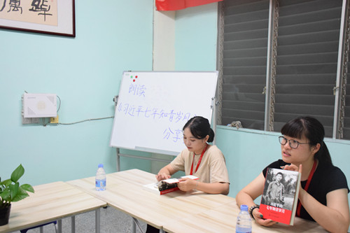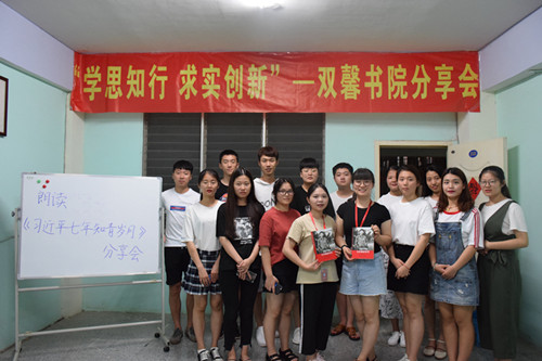2018年5月17日晚,商学院在双馨书院2522阅览室组织开展朗读《习近平的七年知青岁月》分享会。此次活动由16级辅导员陈梦烨老师组织发起,商学院团总支书记罗永珍老师以及商学院16级、17级的朗读志愿者们共同参与。