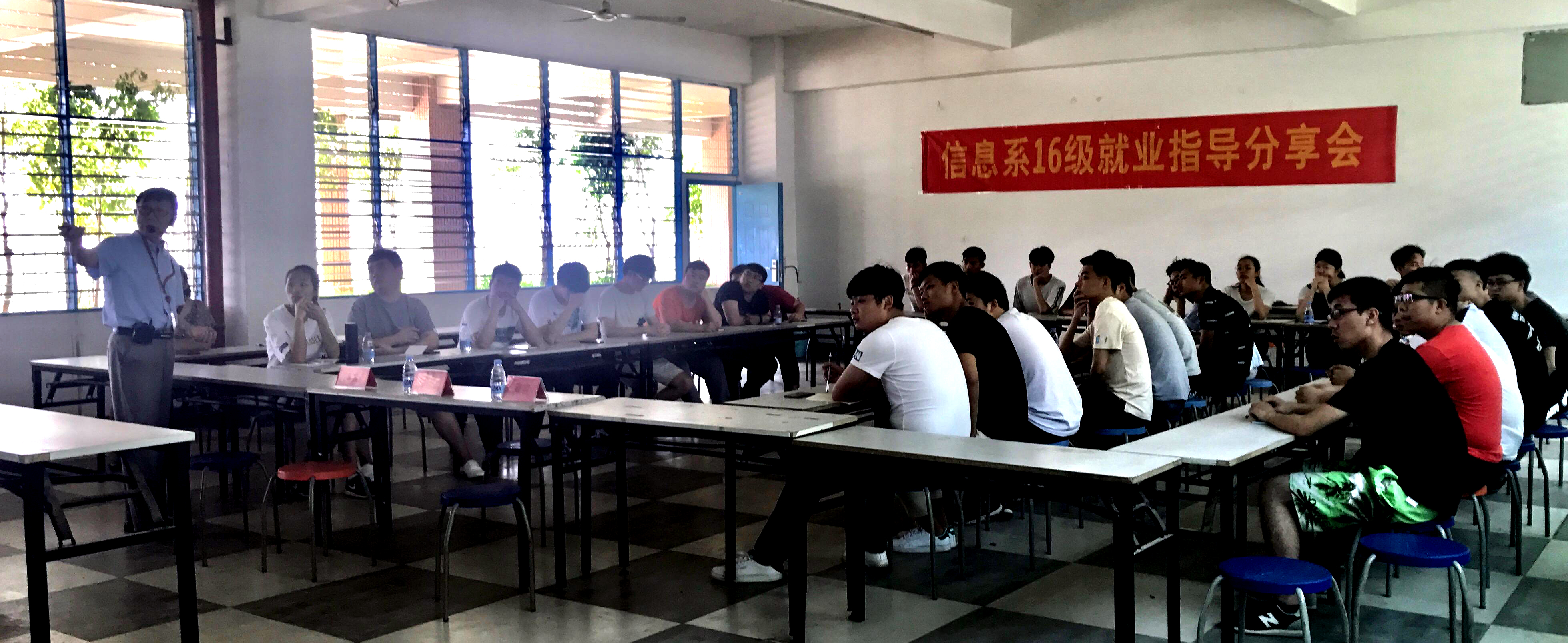 5月17日,信息技术系2016级实习就业经验分享会,在教学楼355教室正式拉开帷幕。分享会由系党支部书记王园园老师主持,辅导员苏新萍老师和2016级计算机应用技术专业1班的全体同学到会。分享会上,信息技术系主任张冲杰教授作了《质量求生存,竞争求发展》的专题演讲。