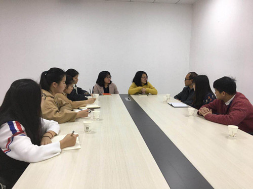3、2018年3月22日下午,商学院党总支书记陈荣惠老师、商学院团总支书记罗永珍老师和商学院16级学生干部走访向阳社工,了解社工最近开展项目和志愿服务大队对接项目近况。在交谈中对志愿服务的形式都有了一定程度上的促进,有了更多的志愿服务新思路。