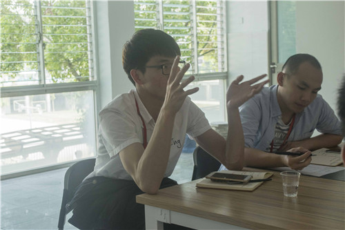针对学生的困惑,院长笑了笑:“我们都是成年人,有独立思考的能力,我很高兴你们可以有自己的兴趣,并且去提升自己、展示自己,改天有兴趣可以唱两首给我们听呢。但是还是要学会合理分配我们的时间,用行动跨越绊住我们学习的‘绊脚石’,主要就是要克服我们的“懒”。