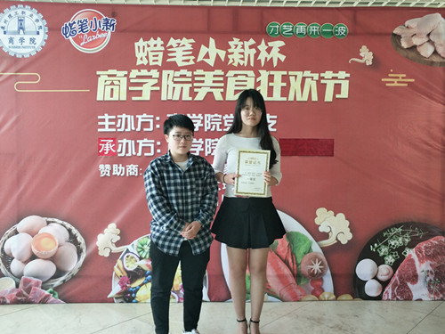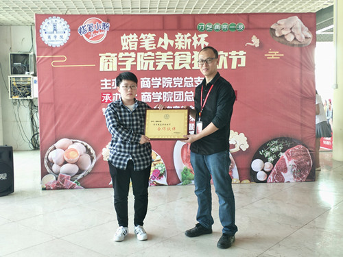 评委们根据佳肴的品名、味道、颜色搭配等方面,综合对参赛作品提出了评价。除了品尝美食外,商学院党总支部书记陈荣惠老师、商学院团总支部书记罗永珍老师在活动上为赞助商授予“合作伙伴”牌匾。