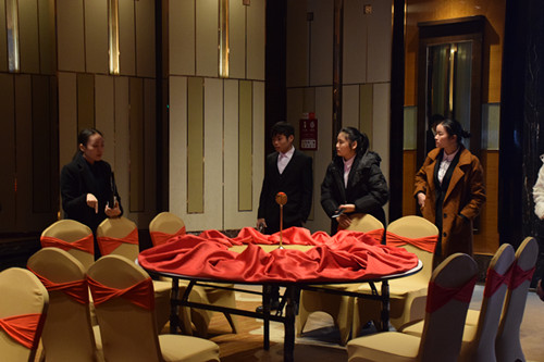 抵达目的地后,先由酒店销售部、人力部的经理分别带领学生对酒店进行全方位的参观并逐一介绍,使同学们能够在短时间内了解酒店的基本职能部门和酒店人员的基本工作内容。参观过程中,学生积极主动提出问题,深入了解专业的工作内容。