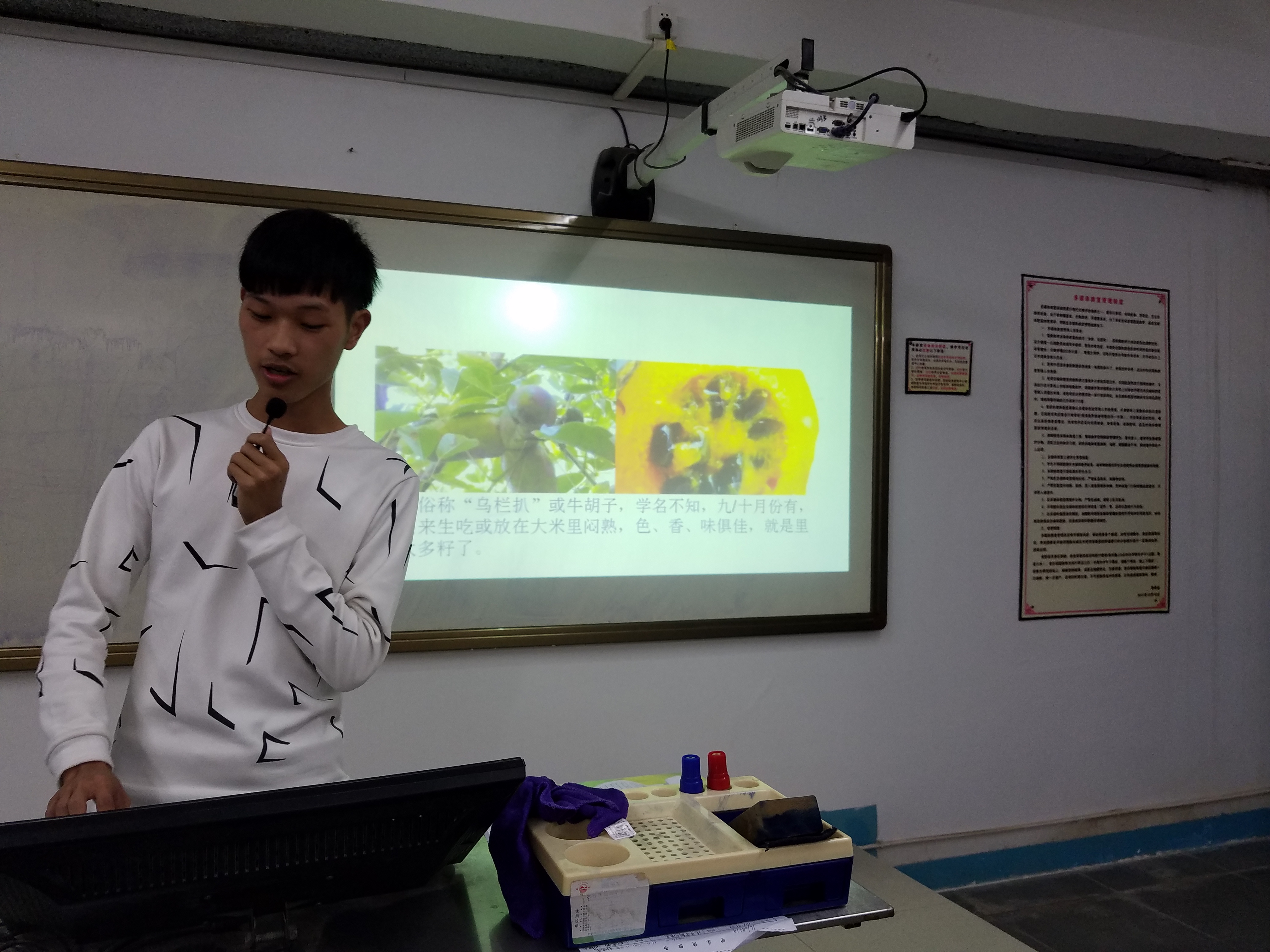 课堂上,同学们展示自己家乡的野果和野菜