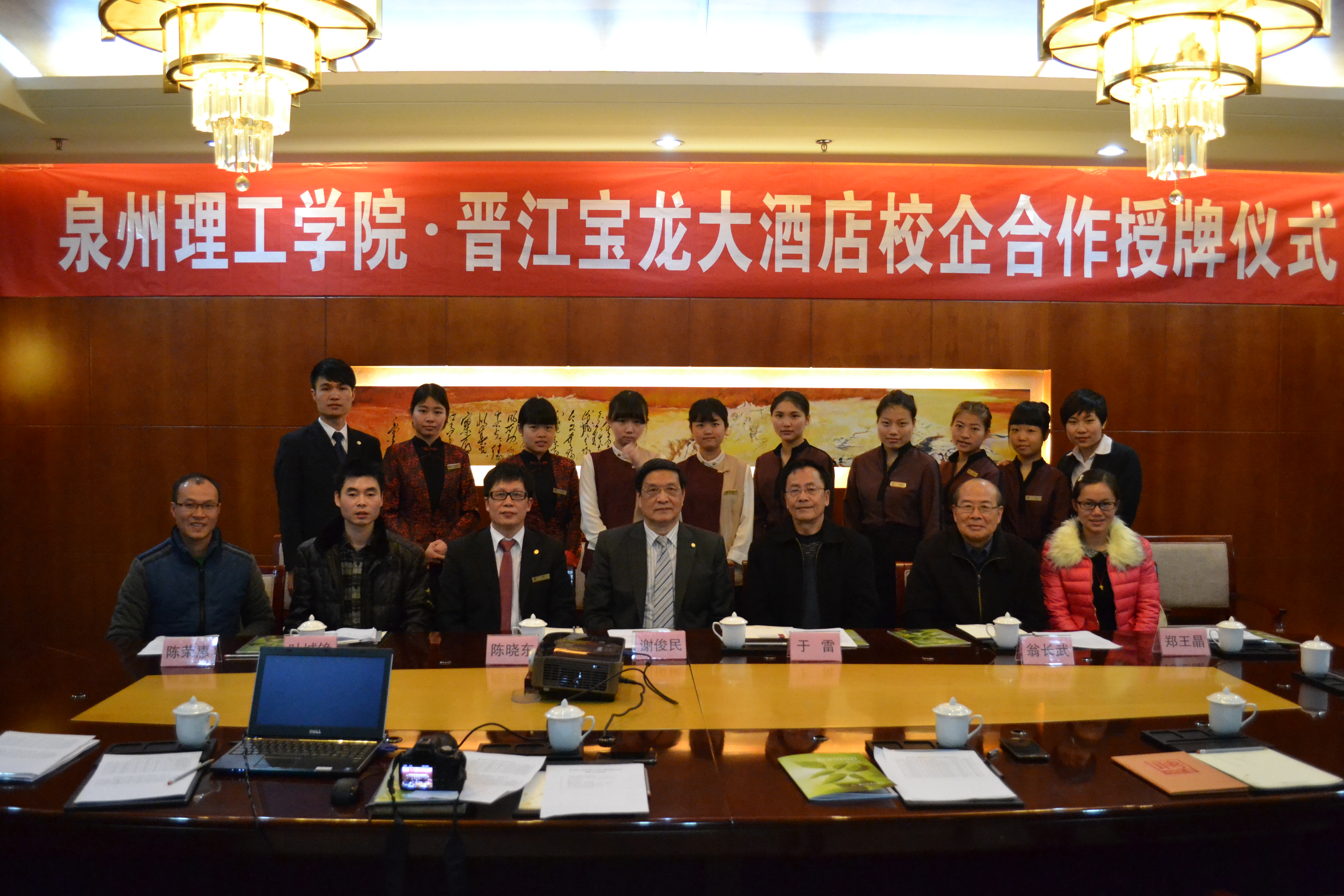 2015年3月13日,泉州理工学院与晋江宝龙大酒店在宝龙大酒店4楼会议厅举行校企合作挂牌仪式,参加仪式的有宝龙大酒店副总经理谢俊民先生、宝龙大酒店人事总监陈晓东先生,以及泉州理工学院副校长于雷教授、商学院院长翁长武副教授等。