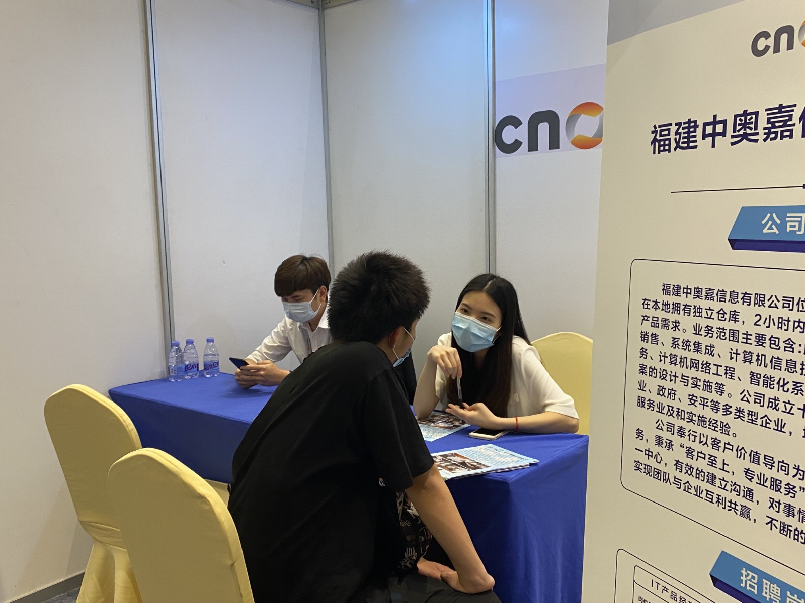 到会场的第一项议程,便是双选会现场,会场的企业共计45家华为核心合作伙伴,包括福建国科信息科技有限公司,共计提供了135个岗位600多位人才需求,各个岗位都具有不错的发展前景和较高的薪酬待遇。同学们随着人群仔细地看着各色各样的公司、岗位以及岗位职责要求,观察着学长、学姐们面试的过程,吸取经验,而后在老师们的鼓励之下,勇敢的上前同几家企业进行深入交谈与了解,咨询了一些关于就业、岗位与自身能力相关的问题,将岗位职责能力不断地与自身做对比,慢慢发现自身所存在的不足,也更明确了后期的学习及规划。
