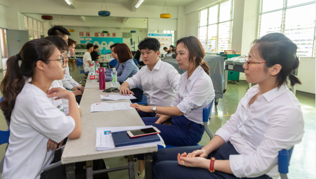 宣讲会结束后,来自于建发汽车的职业经理人分成两组与学生进行面对面交流,通过一个下午的紧张面试,企业与学生达成初步意向。