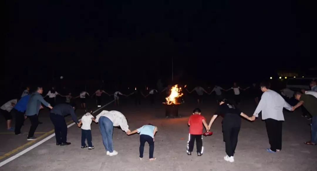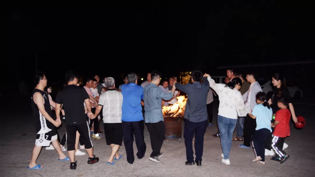 晚上,教师们在主持人的带领下参加篝火晚会,感受民族文化。熊熊篝火映红了笑脸,点燃了热情。